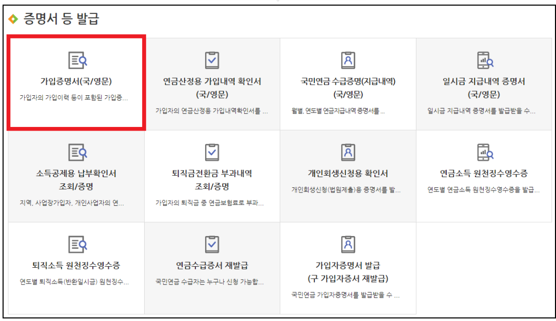 국민연금 가입증명서 (국문/영문 선택)