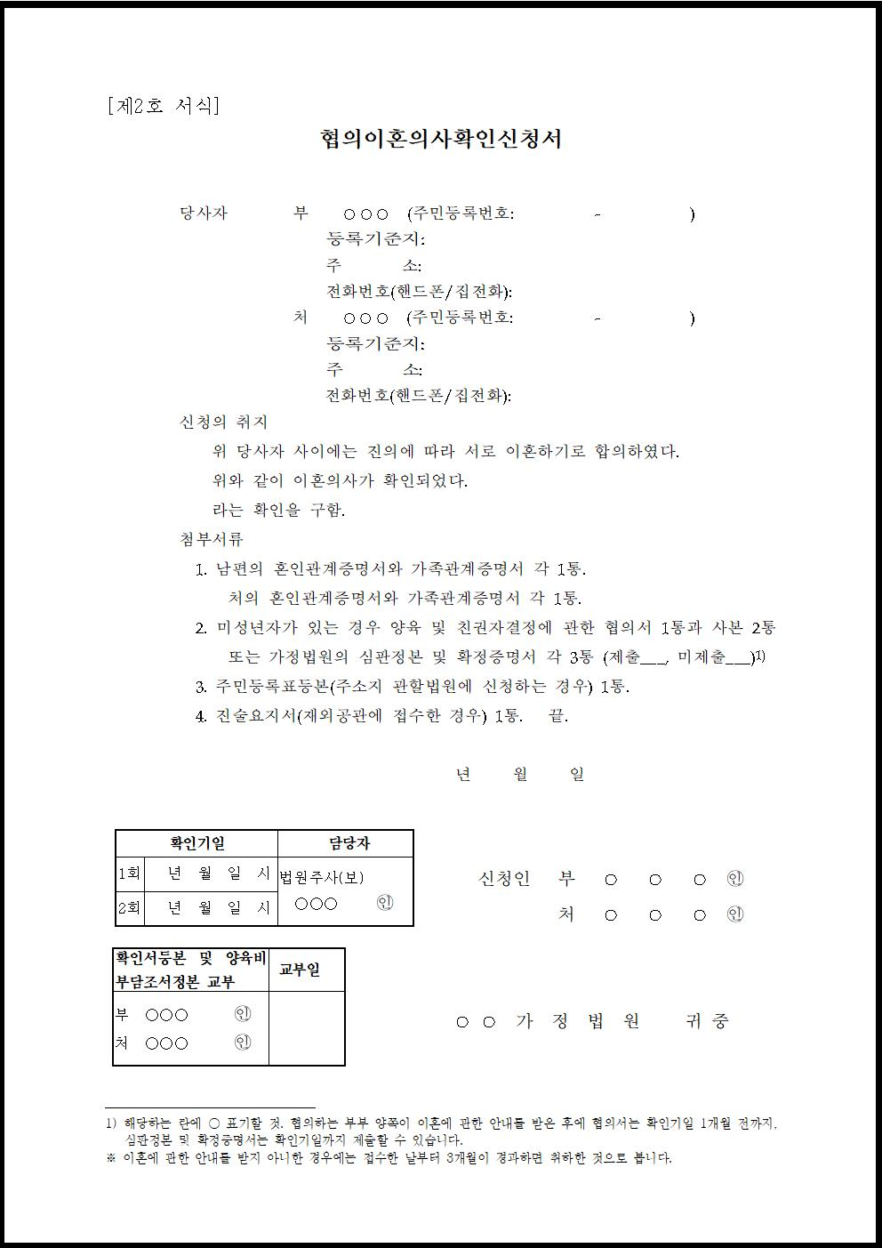 협의이혼의사확인신청서 양식 다운로드