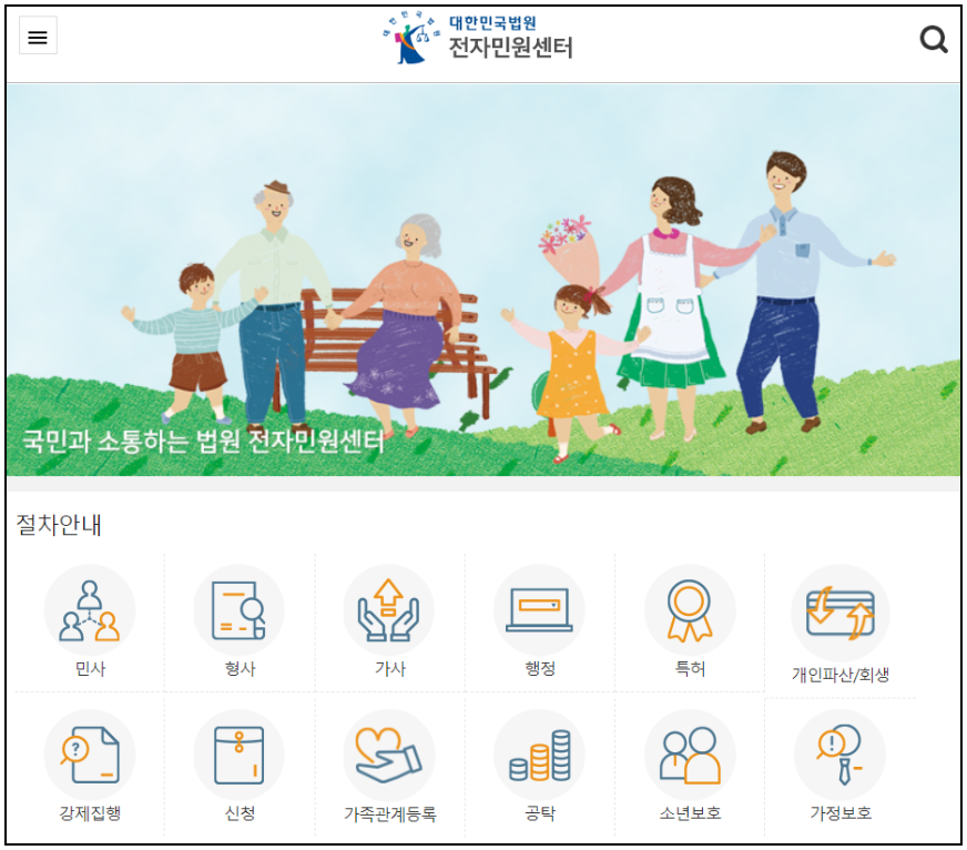 대한민국법원 전자민원센터 접속하기